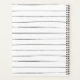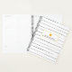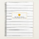 Un planificador de profesores con un diseño de rayas delgadas en blanco y negro inspirado en un cuaderno de bocetos, en la parte delantera y trasera. En la parte delantera aparece texto personalizado bajo el ilustracion de una manzana amarilla dorada.