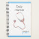 HambyWhiteGlove, alias HAMbyWG, ha diseñado un planificador diario con un tema de profesión "médica". La portada trasera tiene espacio para 4 fotografías. Simplemente descargue en la opción de personalización. Elija la opción de personalización para agregar su nombre y cambiar el texto. La cubierta tiene borde azul y un símbolo de estetoscopio.