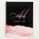 Escritura elegante de un monograma con un elegante fondo negro con rosa ondulado y agato dorado. Las características del texto se pueden personalizar.