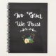 En Dios confiamos. Hermoso planificador con una cubierta inspiradora. En Dios confiamos. Buen regalo para un cristiano. Fondo del estilo de la pizarra.