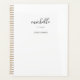 Planificador mensual semanal moderno. Nombre de guión personalizado y floritura decorativa en un fondo blanco. Ideal para boda, negocios, profesional, personal, toma de notas de ducha de novia y planificación de objetivos. No fechado, comienza en cualquier momento.