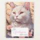 Planificador serene de gato blanco con nombre y añ