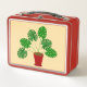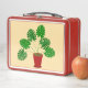 Esta impresionante lonchera presenta una imagen de arte digital de una serie de hojas de una planta doméstica llamada Monstera, también conocida como la planta suiza de queso. Las hojas son de color verde oscuro y están cubiertas de lóbulos y algunas tienen agujeros. La olla de la planta es roja y contiene algo de tierra marrón.