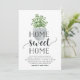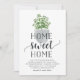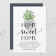 Invite a sus amigos y familiares a su nuevo hogar con nuestras encantadoras invitaciones para fiestas, que incluyen un dulce ilustracion de macetas en color verde y gris con "hogar dulce hogar" en escritura suave en negro y tipografía en bloques. Utilice los campos de plantilla para agregar la información de personalizado, la información de mangueras y los detalles del fiesta.