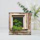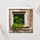 Tarjeta en blanco. plantas de bonito sentadas en una ventana rústica de madera coronan el arte de los ai.