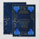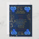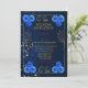 Celebre su día especial con esta elegante invitación de boda floral azul que presenta un borde dorado lujoso. El diseño combina hermosas flores de acuarela azul marino con un marco dorado clásico, creando un aspecto atemporal y sofisticado perfecto para bodas modernas y tradicionales.