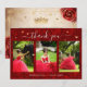 Celebra tu inolvidable quinceañera con esta elegante tarjeta de agradecimiento roja y dorada, que presenta arte original de Raphaela Wilson. Adornada con rosas rojas de acuarela botánica, confeti de mariposas de falso oro brillante y una corona / tiara de princesa real, la parte frontal de esta tarjeta de agradecimiento personalizada muestra 3 de tus fotos favoritas de mis quince años en un diseño vertical (orientación de retrato). La parte trasera ofrece espacio para un mensaje sincero de amor y agradecimiento sobre una textura de papel pergamino antiguo envejecido, lo que la convierte en una hermosa forma de expresar tu gratitud con estilo. Personaliza estas elegantes tarjetas de agradecimiento planas para que se adapten a muchos momentos de cuento de hadas, como bodas de rosas, fiesta de cumpleaños de 16 años de princesa, despedida de soltera "érase una vez", baby shower y otras celebraciones. Siéntete libre de cambiar también la letra de caligrafía y las fuentes modernas a una tipografía elegante que mejor se adapte a tus gustos. ¡Disfruta! Categoría: tarjetas / postales de agradecimiento de quinceañera con 3