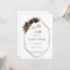 Anuncia tu próxima boda con esta Plantilla de Ahorro de Fecha Teal y Naranja Quemada, diseñada con un fondo blanco limpio, tonos florales ricos y un marco geométrico dorado moderno. Esta plantilla de Canva de 5x7 es perfecta para bodas de otoño, estilos románticos modernos o paletas de colores boho-glam. ¡Rápida de personalizar y fácil de imprimir o enviar digitalmente!