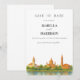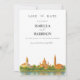 Esta plantilla imprimible de guardar la fecha presenta una pintura de acuarela del horizonte de la ciudad de St Augustine. Utilice esta plantilla para editar todo el texto, fuente, color de fuente y color de fondo para que coincida con el estilo de su evento. Agregue su propia foto o gráficos fácilmente a esta plantilla.