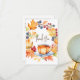 Tarjetas de agradecimiento de baby shower de otoño con tema de amor que se está preparando, corona de hojas de otoño y bayas de acuarela y taza de té de calabaza para tarjetas de agradecimiento de baby shower de otoño