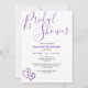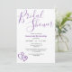 Esta invitación de baby shower nupcial presenta un patrón de arte de corazones morados enlazados en la parte posterior con detalles de la plantilla en la parte frontal. Personalice el texto en los campos de la plantilla, elimine el texto o haga clic en personalizar para seleccionar un estilo de fuente, tamaño y color que prefiera.