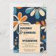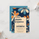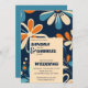 Retro 70ies verde azulados tonos azul marino daisy flores boda plantilla editable invitación descarga digital instantánea, invitación de boda retro moderna colores silenciados