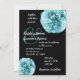 Este diseño con sus rosas azul acuático sobre un fondo negro crea una invitación de boda diferente. Puedes experimentar con diferentes tipos de papel para ver cuál te gusta más. Le recomiendo el papel metálico de casco de hielo, que le dará a su invitación de boda un brillo especial y brillo.
