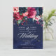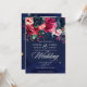 Flores borgoñas azul marino rosas vintage plantilla de invitación de boda descarga instantánea con código QR RSVP, sólo agregar su dirección url y zazzle generará su código