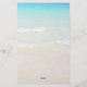 Temática de playa, plantilla de boletín de Navidades. Las imágenes en dólares de arena clara sobre el mar tropical y el fondo de arena son el telón de fondo de tu carta de "año de revisión" de la familia. El texto es azul-verde oscuro en el guión del título e impreso para la letra. Al revés también hay una imagen de playa.