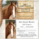 Plantilla de certificado de regalo para una clase de equitación de caballo o poni. Si lo desea, puede reemplazar las imágenes con sus propias imágenes de caballo. Esta tarjeta es ideal para un rancho, un centro ecuestre o cualquier persona que ofrezca clases de equitación. ¡Por supuesto también puedes usar esta tarjeta como tarjeta de visita regular!