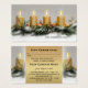 Certificado de regalo festivo en tamaño de tarjeta de negocios, con velas doradas y ramitas de pino en la nieve. Hermoso para las fiestas de Navidad.