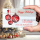 Festividad y original plantilla de certificado de regalo de arte en 3D para la temporada de vacaciones y Navidades, con tres adornos de Navidad de bola en rojo brillante y blanco. Los dos textos principales son imágenes y se pueden borrar si prefiere texto personalizado.