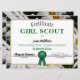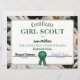 Enmarcado en un hermoso borde fotográfico de margaritas, este certificado es para completar "x" cantidad de años en exploraciones para chicas más jóvenes. Y es una plantilla de personalizable. Simplemente rellenas las áreas y terminas. En la parte de atrás, también tienes la opción de subir una foto de recuerdo.