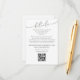 Esta tarjeta de gabinete de detalles sencillos con una línea de tiempo incluye detalles modernos y simples sitios web bodas, caligrafía dirección web rsvp en línea, información elegante en blanco y negro, información minimalista elegante y moderna, tipografía simple y elegante, dirección web más información, respuesta de invitados web, rsvp en línea en el sitio, sitio web moderno sofisticado, detalles de invitados e información, con colocación de código QR.