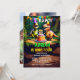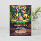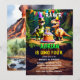 Invitación de cumpleaños de dinosaurio cuatro dinosaurios coloridos editable plantilla de cumpleaños de dinosaurio digital descarga, dinosaurios con sombreros de fiesta con una tarta de cumpleaños de dinosaurio.