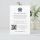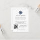 Diseñado para coordinar con nuestra colección de Bodas de Copo de Nieve Elegantes de Invierno, esta elegante plantilla de tarjeta de bodas con tema de nieve presenta un pequeño copo de nieve en estilo minimalista en azul marino sobre los detalles de texto personalizado y código qr.