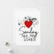 Texto editable que dice "Enviando todo mi amor". Perfecto para el Día de San Valentín. Corazón rojo con corazones de sello negro y escritura en el fondo. También disponible como descarga digital para uso personal únicamente.