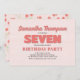 ¡Celebremos su gran día con la invitación de este chica a la fiesta de sétimo cumpleaños! Con una tipografía rosa de "siete", un lindo patrón floral y una plantilla simple, este diseño es perfecto para una celebración moderna y minimalista. El capricho de la caligrafía añade un toque divertido, mientras que las elegantes flores de moda aportan un ambiente elegante y luminoso. Personaliza esta divertida y encantadora invitación hoy para una memorable celebración de cumpleaños.