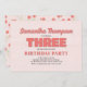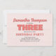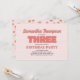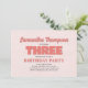 ¡Celebremos su gran día con la invitación de este chica a la fiesta de tercer cumpleaños! Con una tipografía rosa de "tres", un lindo patrón floral y una plantilla simple, este diseño es perfecto para una celebración moderna y minimalista. El capricho de la caligrafía añade un toque divertido, mientras que las elegantes flores de moda aportan un ambiente elegante y luminoso. Personaliza esta divertida y encantadora invitación hoy para una memorable celebración de cumpleaños.