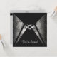 Elegante damasco negro sobre un diseño de fondo negro plateado invitación de fiesta con borde negro y de diamante. Este diseño de plantilla funciona bien como invitación a una fiesta de cumpleaños, cóctel, fiesta navideña, fiesta de jubilación, fiesta de Nochevieja y cualquier otra ocasión especial. Personalice con su elección de estilo de fuente y color de fuente, y color de fondo.