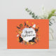 Tarjeta de invitación moderna naranja sombrero negro de fiesta de Halloween, plantilla. Símbolos de la fiesta del día de Halloween. Invitaciones y anuncio - Tarjeta. Calabaza de Halloween, sombrero de bruja mágica, murciélago, gato negro, araña, telaraña, casa, luna, símbolos de Halloween, ilustración, dibujo. Ilustración de símbolos de noche mágica de Halloween con opción de cambio de texto personalizado