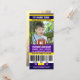 Un cumpleaños súper divertido con temática de entrada para un partido de fútbol con la foto de tu pequeño astro en la portada. En los colores favoritos del equipo, púrpura y amarillo, con un fondo de falso foil dorado en el reverso.