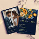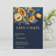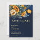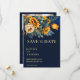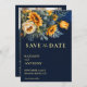 Flores de sol rústicas azul de la Marina Oscura planilla de foto de la boda otoño salva la invitación de la fecha, boda de otoño de verano salva la fecha boda con temática azul y amarilla