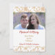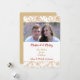 Esta plantilla de foto para tarjeta plana de Navidad pone tus fotografías en el centro de atención, con un bonito borde de patrón de copo de nieve en acuarela dorado y blanco en la parte superior e inferior. Tu texto personalizado está en dorado y rojo a juego en el centro sobre un fondo blanco. Hemos mostrado un tema "Casados y alegres", pero todo el texto se personaliza fácilmente, por lo que este diseño se puede adaptar a cualquier situación, incluyendo una fotografía familiar. La parte posterior de la tarjeta es de dorado sólido a juego. *Crédito del patrón de copo de nieve a ATArtDigital*