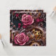 Hermosa plantilla de foto personalizada gótica victoriana steampunk tarjeta del día de San Valentín. Bellas rosas rosadas, engranajes de metal dorado, plateado y cobre. La parte trasera tiene tres espacios para fotos en forma de corazón. También puedes editar el texto en el área de personalización.