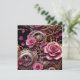 Hermosa plantilla de foto personalizada gótica victoriana steampunk para tarjeta del día de San Valentín. Hermosas rosas rosadas, engranajes metálicos de oro, plata y cobre. La parte trasera tiene tres espacios para fotos en forma de corazón. También puedes editar el texto en el área de personalización.