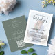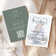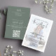 Celebra tu día especial con estas elegantes invitaciones de boda que incluyen una plantilla personalizada de superposición de fotos en tonos verdes frescos y suaves detalles de acuarela. El diseño minimalista combina el guión elegante de caligrafía con la tipografía moderna para un aspecto atemporal. Un código QR integrado conecta directamente a su sitio web boda, lo que facilita a los huéspedes el acceso a RSVP en línea. Perfecto para parejas que aprecian los tonos naturales y el diseño de la moda sin esfuerzo.