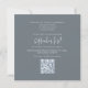 Haga una primera impresión duradera con estas invitaciones de boda que incluyen una hermosa plantilla superpuesta de fotos con acentos suaves de color azul gris y agua de ensueño. Diseñada con un diseño minimalista, un guión elegante de caligrafía y una tipografía moderna, esta invitación combina el encanto atemporal con el estilo contemporáneo. Dirija fácilmente a los huéspedes a RSVP con un código QR incorporado que se vincula a su sitio web boda para una experiencia de respuesta en línea sin problemas. Perfecto para parejas que aman los detalles románticos y modernos.