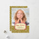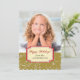 La parte inferior de esta plantilla de fotos de vacaciones es un borde de Navidades blancos bonitos girando y estrellas sobre un fondo dorado. Tu propia fotografía cubre la parte superior, y un cartel de borde rojo, blanco y dorado correspondiente separa las dos partes. "¡Felices Fiestas!" es la primera línea de la pancarta, con su propio texto en verde debajo. La parte posterior de la tarjeta coincide con el diseño giratorio dorado y blanco. Festividad, y complementaria a casi cualquier fotografía. Este diseño funciona bien con la mayoría de las formas de tarjeta ofrecidas.
