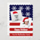 Un patriótico colage de fotos en blanco y azul brillante Navidades de fotos navideñas plantilla de fotos modernas personalizadas tarjeta de Navidad inspirada en la bandera estadounidense con copos de nieve de invierno que reemplazan a las estrellas y bandera de rayas añaden tus fotos familiares favoritas de instagram y saludos para crear tu propia tarjeta de saludo de Navidades patrióticos festivos. Añade fácilmente tus propias fotos de estilo de instagram a las plantillas.