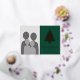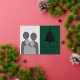 El diseño original de la silueta de Destei de una forma de árbol de Navidad con una estrella encima. El color de fondo es verde y hay tres áreas de texto personalizables. Junto al diseño hay una plantilla de fotos personalizado.