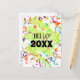 Esta cubierta de tarjeta postal diseñada para el año nuevo presenta confeti colorido y un garabato verde. Personalice el texto en la parte delantera y trasera, retire cualquier texto o haga clic en personalizar para seleccionar un estilo de fuente, tamaño y color que prefiera.