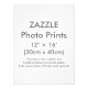 Plantilla de impresión fotográfica de Zazzle Personalizado de 12" × 16". Retrato de 12" × 16" (30,5 × 40,6 cm); 4:3 (1,33); 3600 x 4800 - para papel B&W. Frecuentemente llamados "30 × 40 cm". Hace un gran regalo personalizado de cumpleaños, aniversario o Navidades, con varias opciones de cuadro adicionales. Sube tu propia foto y la personaliza completamente con texto (docenas de opciones de tipo de letra) y tu propia imagen, patrón, motivo o diseño. MEDIA: Papel fotográfico profesional Kodak (satinado). El papel fotográfico de Kodak, desarrollado específicamente para la impresión en salas oscuras, es un papel de haluro de plata de primera calidad diseñado para realzar los colores de manera espectacular, manteniendo al mismo tiempo una reproducción tonal consistente.