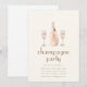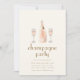Esta elegante plantilla de invitación de fiesta con tema francés presenta un diseño chic con una botella de champán en el centro, flanqueada por dos copas de champán brillantes a cada lado. La botella y las copas están sutilmente detalladas, evocando una sensación de sofisticación y celebración. Debajo de este centro de mesa, los detalles de la fiesta se muestran hermosamente en una fuente francesa juguetona pero elegante, lo que añade un toque auténtico al tema general. La plantilla captura la esencia del encanto parisino, lo que la hace perfecta para una soirée llena de elegancia y joie de vivre.