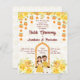 Presupuesto boda hindú prehindú adorable pareja hindú modelo de invitación a flores amarillas.