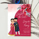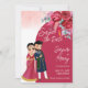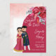 Cute boda india Guardar la plantilla de la tarjeta de invitación Date. Viva el color magenta, pareja de novias indias, rosas burdeos.