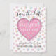 Plantilla de invitación con corazón rosa y motas
