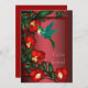 Hermosa plantilla de invitación de flores de hibisco rojas y colibrí azul verde y turquesa. Personalice para su evento: fiesta de cumpleaños, ducha de novia, anuncio, fiesta, jubilación, corporativo, etc.