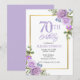 ¡Celebra un hito con nuestra plantilla de invitación de cumpleaños 70! Adornada con hermosas flores moradas, esta invitación de 5x7 es perfecta para cualquier celebración de cumpleaños. Personaliza e impresiona a tus invitados con este diseño elegante y moderno. ¡Salud por 70 años!