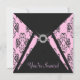 Elegante invitación de fiesta y evento con diseño de damasco negro sobre rosa con borde negro y de diamante. Esta plantilla funciona bien como invitación a una fiesta de cumpleaños, cóctel, fiesta navideña, evento corporativo, gala, fiesta de jubilación, fiesta de graduación y cualquier otra ocasión especial. Personalice con su elección de estilo de fuente y color de fuente, y color de fondo del reverso.